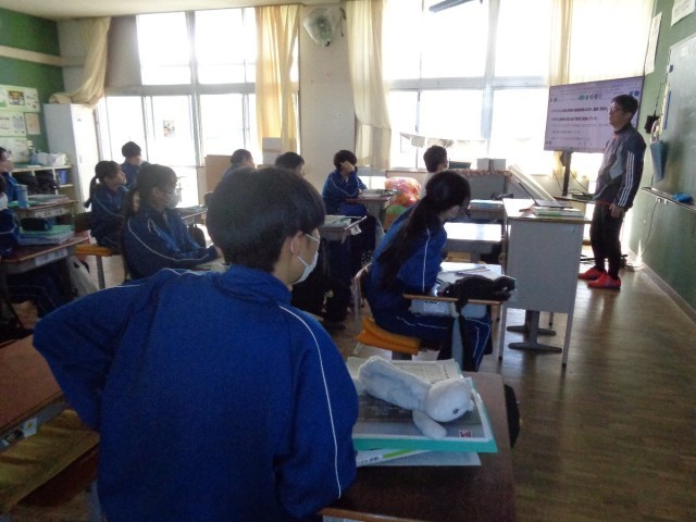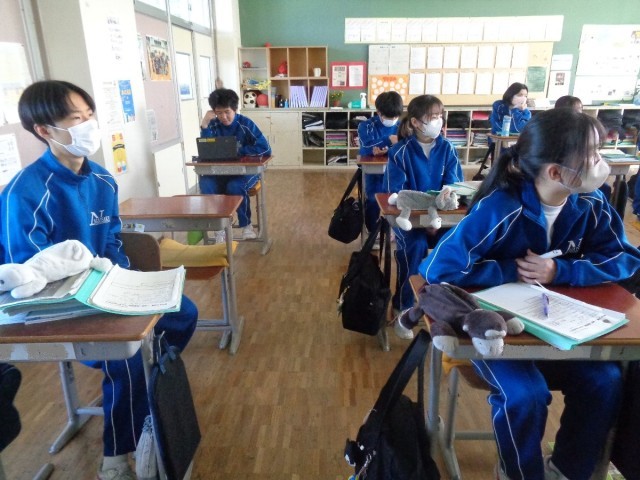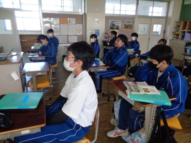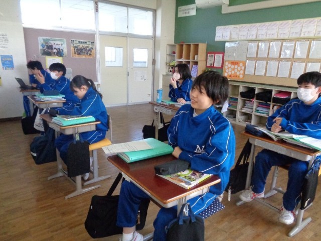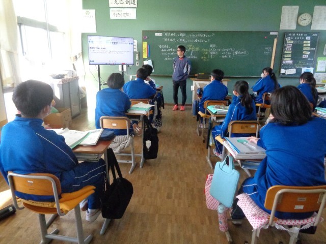 今日は欠席者が多く、空席が目立つ7年生の教室でしたが、意見を積極的に発言する生徒たちのおかげで、活発なやりとりが見られました。