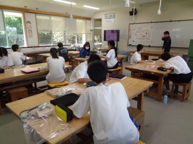 8年生の総合的な学習の時間で行っている「CREW」の中間発表を行いました。