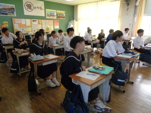 生徒たちはお話を聞きながら大きくうなずいたり、メモを取ったりして、真剣に耳を傾けていました。