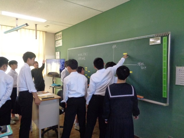 静岡大学の村越 真 様をお招きして、9年生の総合的な学習の時間で防災学習を行いました。