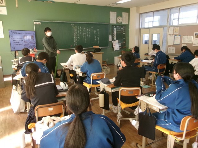 静岡大学の村越 真 様をお招きして、9年生の総合的な学習の時間で防災学習を行いました。