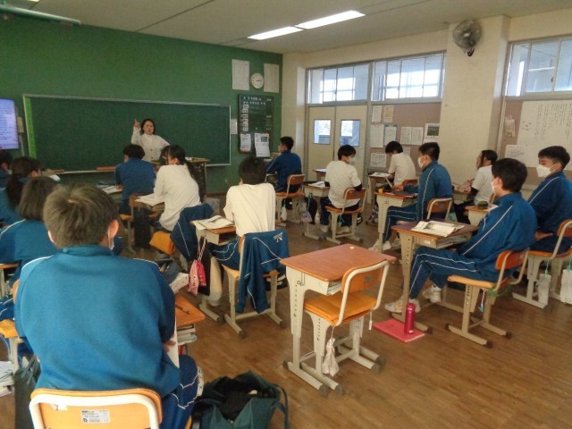 昨日、各自で読んだ長文について全体で確認しています。
