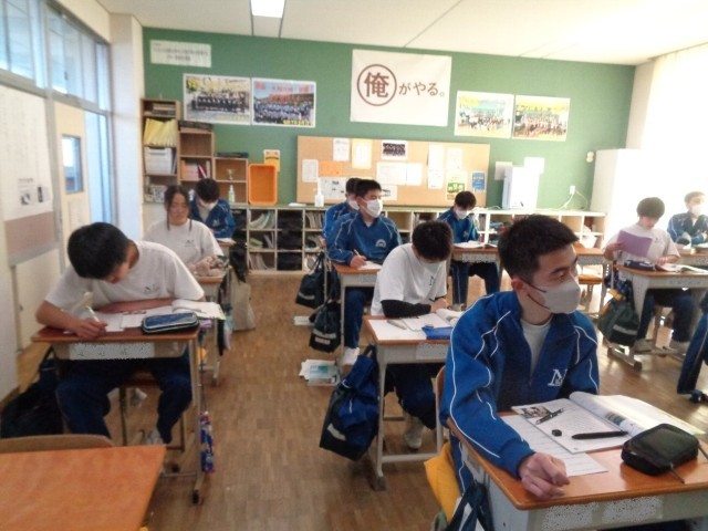 配られるとすぐに問題を見て解き始める姿は、さすが受験生です。