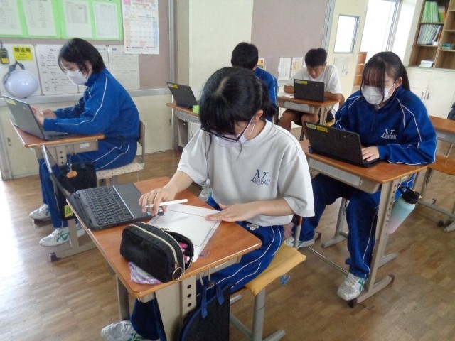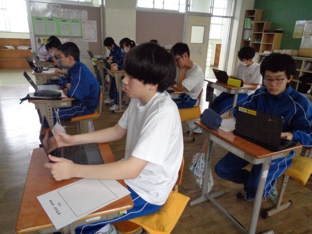 このところ、9年生は各自で学習を進める授業が続いていますが、今日の教室の空気は、いつもより緊張感が漂っているような気がします。