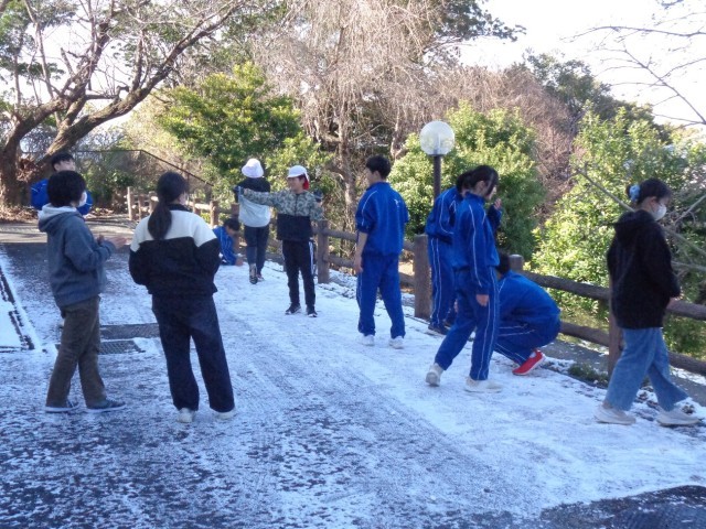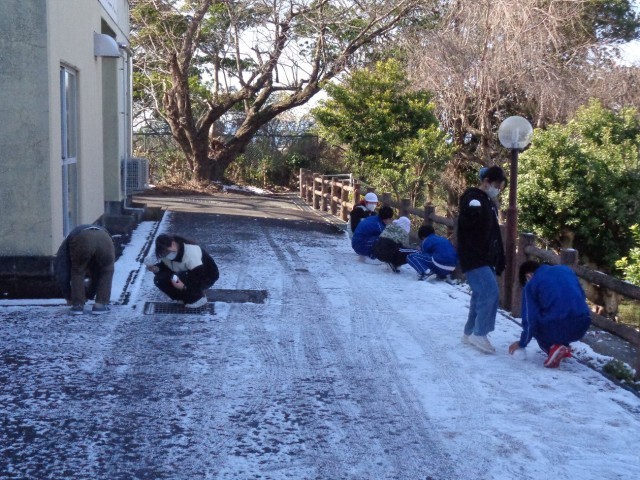 校舎の北側や造形室の周辺に雪があるを見つけた6・7年生は、雪だるまを作ったり、雪合戦もどきのバトルを始めたりして楽しそうに過ごしていました。