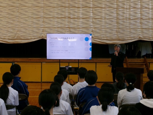 弁護士としての立場から、法的な根拠や事例を挙げていただきながら、「いじめ」などの人を傷つける行為が、どのような結果を招くのかをお話ししていただきました。