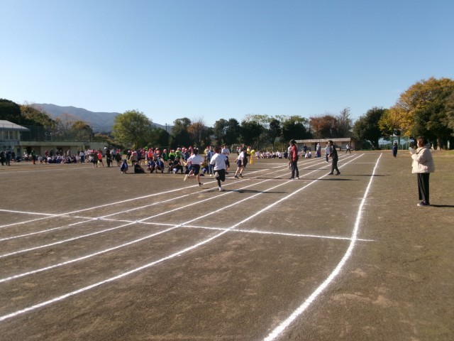 次に3・4年生、5・6年生の順にトラックを半周ずつ走ります。
