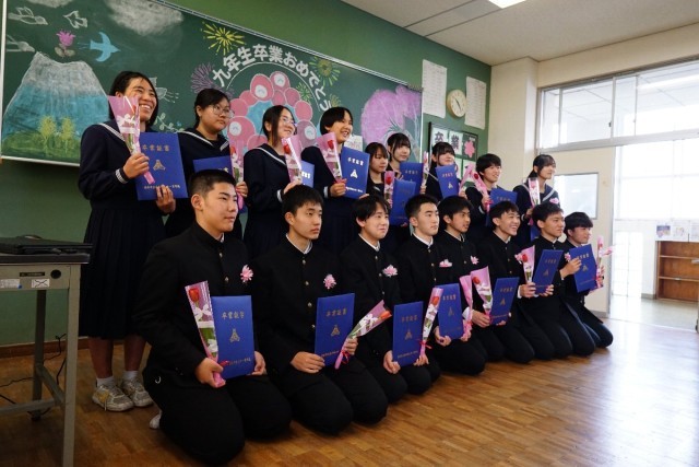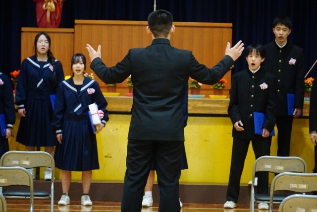 在校生全員が参加する卒業式は、小規模の小中一貫校ならではの行事です。