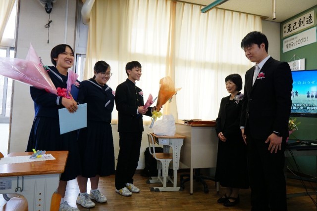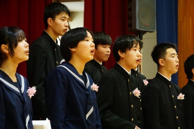 会場が和むシーンのあった校長式辞、思いのこもった送辞、もらい泣きする人が続出した答辞、一つ一つが心に残る式でした。