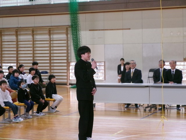 初志部・立志部・大志部それぞれの代表が1年間を振り返っての発表をしたり、校長先生から修了証をいただいたりしました。
