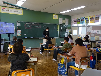 大きな面積の求め方を勉強しました。自分の考えを伝え合い、「なるほど」「そうか」等とつぶやきながら授業が進んでいました。