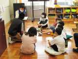 今日も子どもたちは元気に登校しました。登校後、1年生の教室では6年生のお兄さん・お姉さんが紙芝居の読み聞かせをしています。
