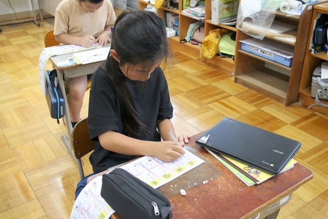 9/29(月)4年生 国語 公開日 2025/09/29 更新日 2025/09/29 4年生 4年生の国語では、漢字の書き方の授業が進められています。モニターで書き順を覚え、漢字ドリルに書き込んでいきます。パソコンで漢字変換ができることも大事ですが、まずは自分で書いて覚えることが最も大切ですね。 +3 4年生