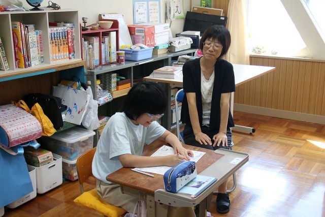 4年2組の生活単元では、カレンダーづくりをしています。色の塗り方がとても丁寧で大変上手でした。きっと素敵なカレンダーが出来上がると思います。担任の先生もその姿を温かく見守っています。