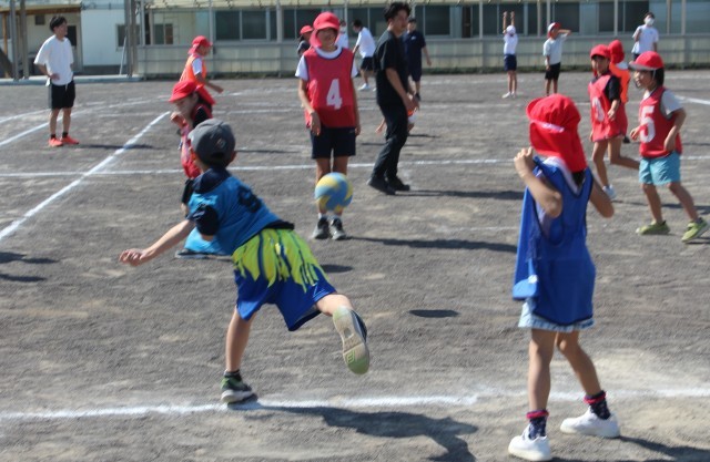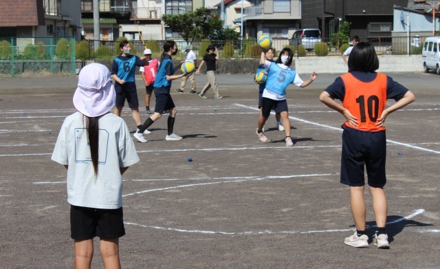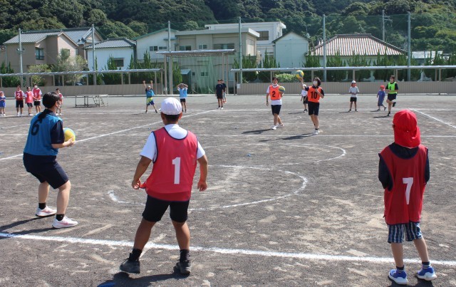 9/30(火)全校遊びの会 公開日 2025/09/30 更新日 2025/09/30 小中一貫教育 今日の昼休みは1~9年生が一緒に遊ぶ全校遊びの会でした。潮風祭に向けて仲間意識を深めるという目的で学年委員会が計画してくれました。はあと班でチームを組み、四面ドッジボールをしました。中学生は利き手と逆の手で投げるというハンディがありましたが、全校で楽しく遊べたようです。小学生と中学生が仲良く遊べるのは一貫校の強みですね。 +3 小中一貫教育