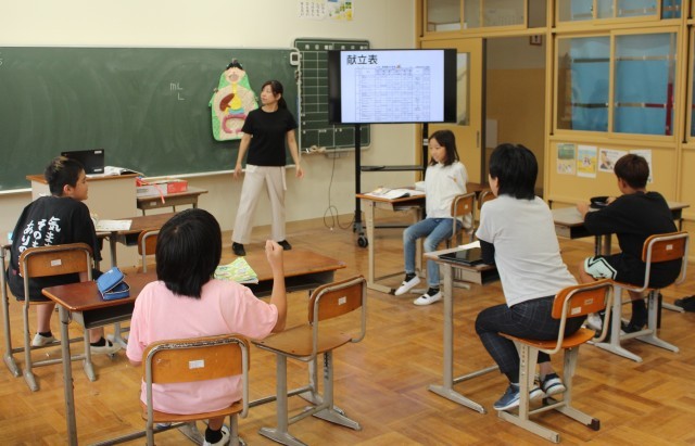 今日の5年生の家庭科では、栄養教諭による食育の授業が行われました。普段、目にしている給食の献立も確認しながら授業が進みました。子供たちは、五大栄養素について種類や働きについて学びました。これからも栄養バランスを考えて食事がとれるといいですね。