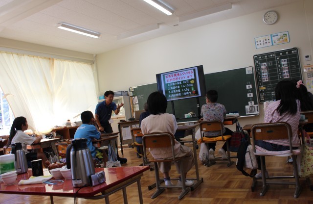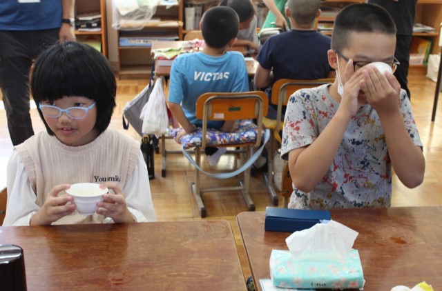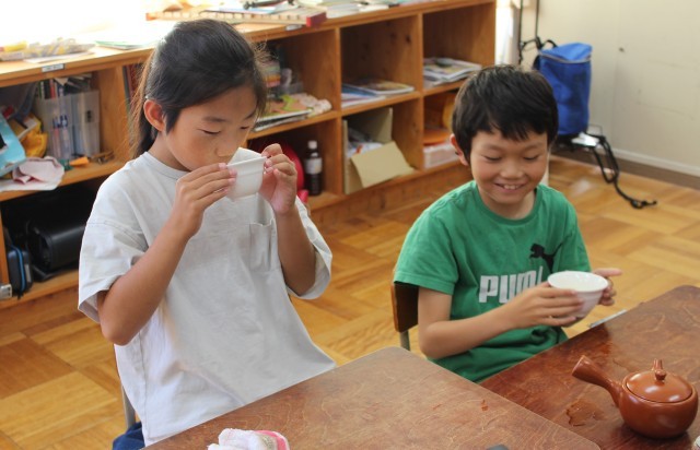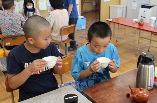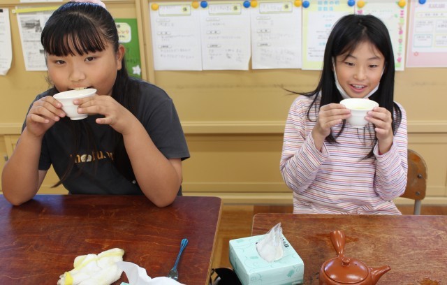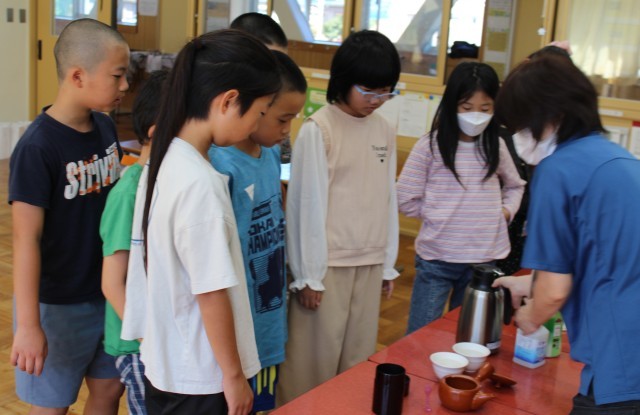 10/17(金)3・4年生 お茶講座 公開日 2025/10/17 更新日 2025/10/17 3・4年生 今日は、JAふじ伊豆から講師の先生をお招きして、お茶講座を行いました。美味しいお茶のいれ方や、お湯の温度によって味が変わることなど説明していただきました。実際に自分たちでお茶をいれてみて、味を確かめました。お茶を飲んだ子供たちからは、自然に笑顔がこぼれていました。 +3 3・4年生