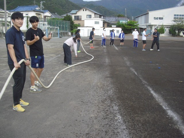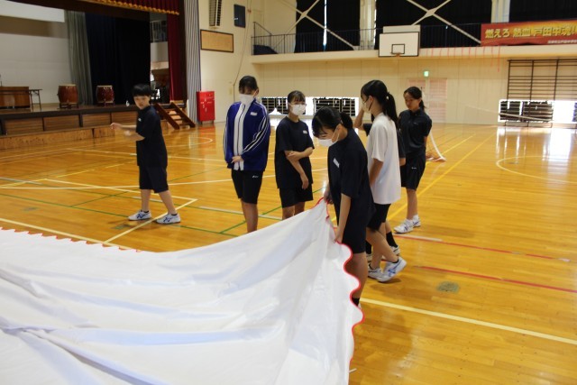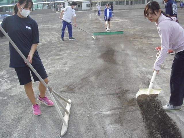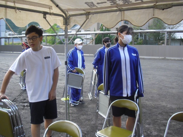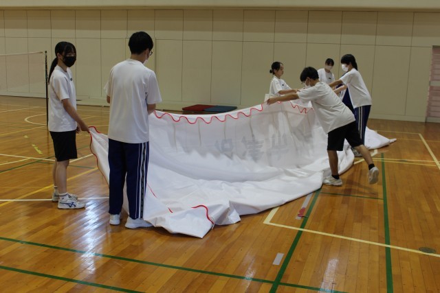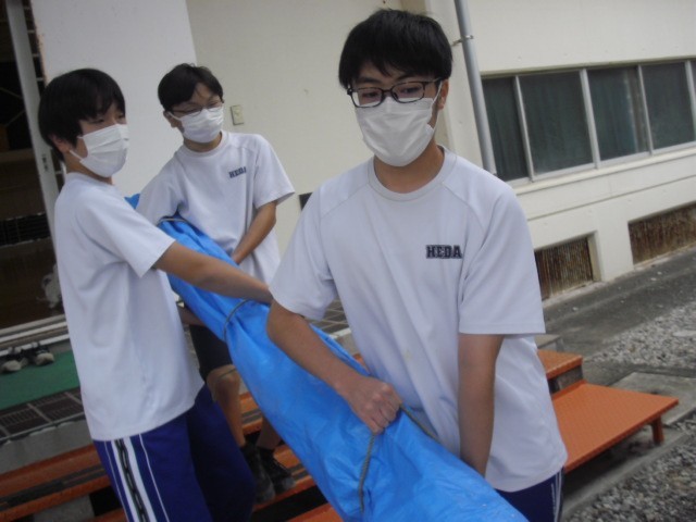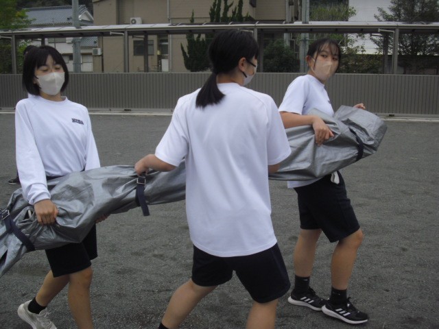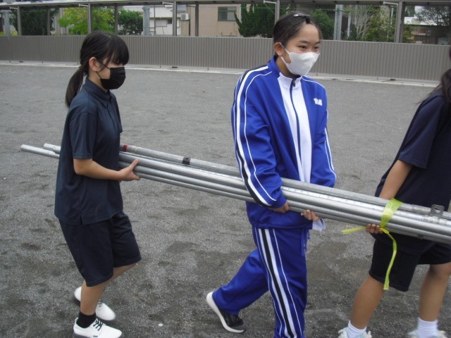 10月16日(木)に開催された潮風祭ですが、その成功の陰には多くの人の尽力がありました。運動場の凸凹をなくすために土をいれてならす、テント設営のため重たい支柱を運ぶ、競技用のラインをひく、多くのパイプ椅子をならべる、コース上の石をとりのぞくなど、目立たないけれどそれらの作業に一生懸命取り組んでくれた人がいたことを忘れないでください。ちなみに、雨に濡れ体育館に干してあったテントは翌日の朝7~9年生がたたんでくれました。
