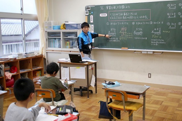 3年生の算数では、筆算について「くり上がりがあるときには、どんなことに気をつけたらいいいのかな」を学習問題として授業が進められています。積極的に発言する児童の姿に、感心させられました。