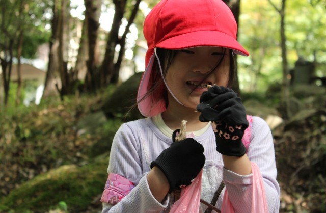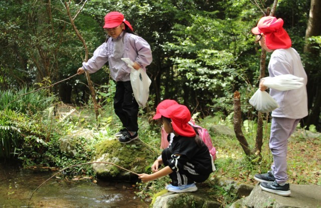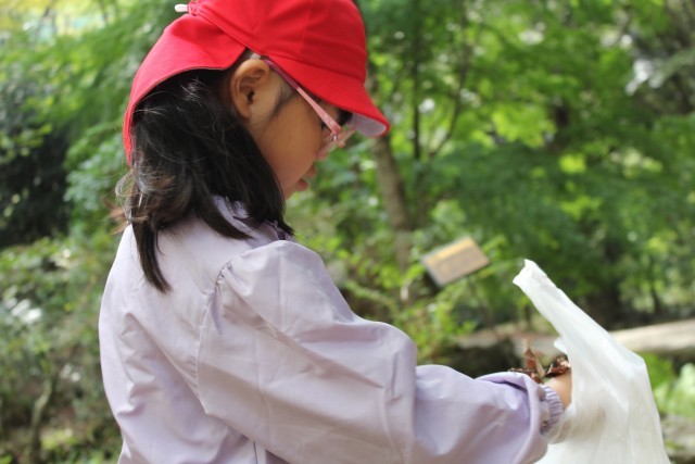 1年生は、秋を見つけに「もてなしの里」「はかま滝キャンプ場」「御浜海岸」へ出かけました。はかまだ滝キャンプ場では、クヌギやシイの実を拾いました。きれいな水辺にいる魚を見つけて「釣りたい~!」という声が聞こえました。たくさんの秋を見つけられたかな?