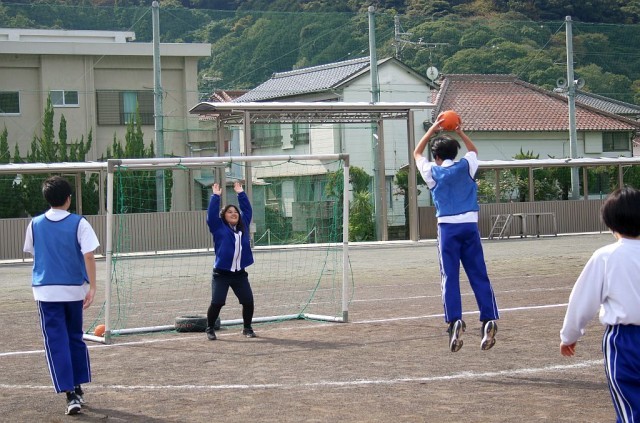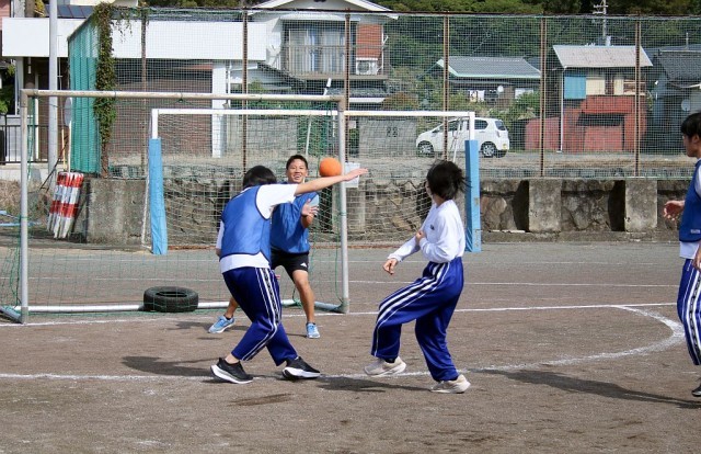10/29(水)9年生 保健体育 公開日 2025/10/29 更新日 2025/10/29 9年生 9年生の保体では、ハンドボールを行っています。基本練習の後、先生を加えた6人で3対3の試合を行いました。いいシュートも何本か決まり、みんな楽しそうに体を動かしていました。授業の最後は、Chromebookで授業の振り返りを行いました。 +7 9年生