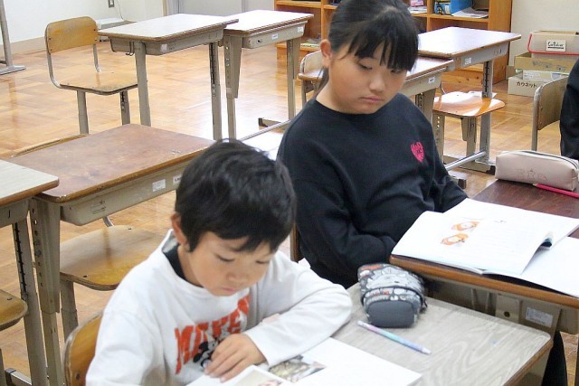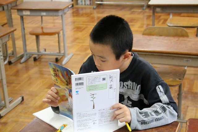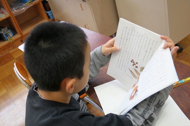 3年生の国語では、教科書の「接着剤の今と昔」を題材として授業が進められています。「はじめ、中、終わりに分けよう」を学習問題として、読んだ文章を各自で分けていきます。文章の理解度が問われます。頑張れ!3年生。