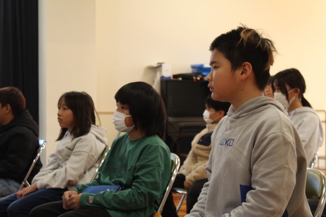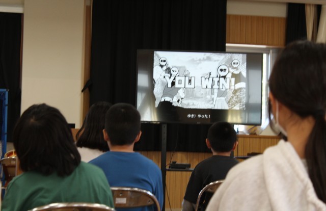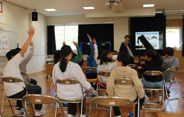 3~6年生は、防犯教室としてインターネットの安全な使い方について学びました。「文字」と「言葉」では、受け取り方が違うことから、SNSを使うときに気持ちを伝えることが難しいことを知りました。講師の先生からは「メールなどを送るときには人を傷つける内容になっていないか確かめてほしい」と説明がありました。他にも、「なりすまし」「うその情報」など、インターネットを使う際に注意した方がいいことを教えていただきました。