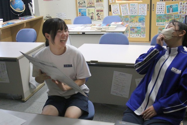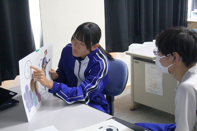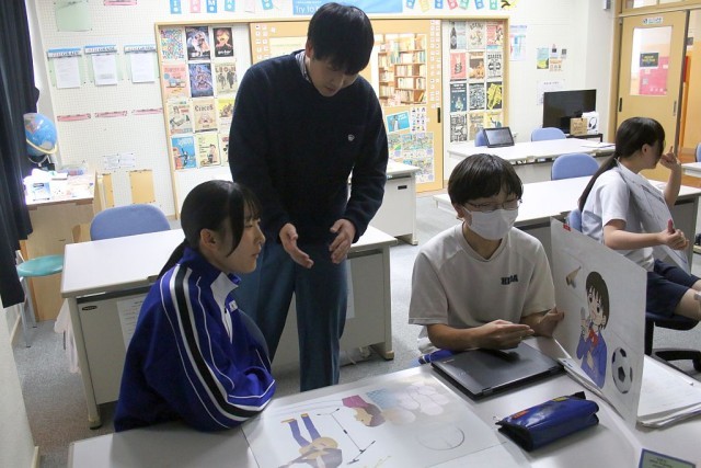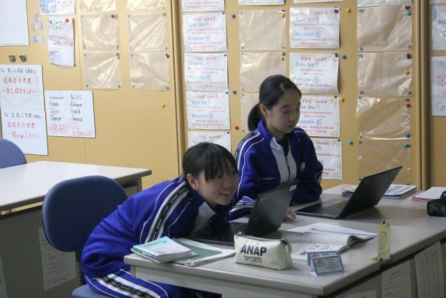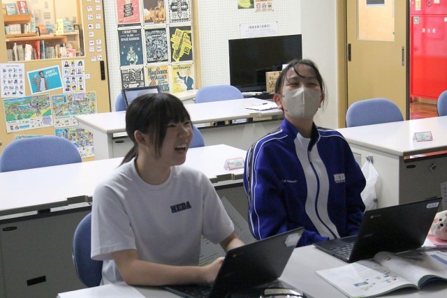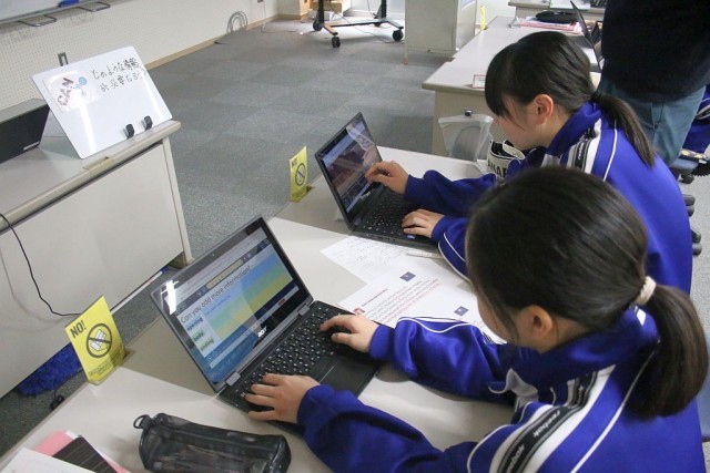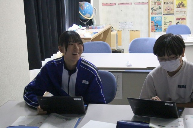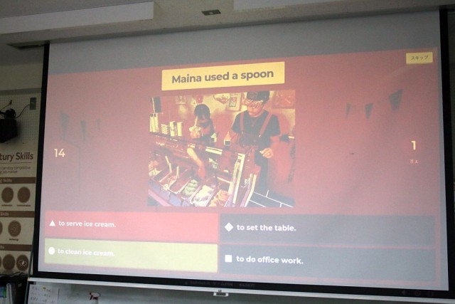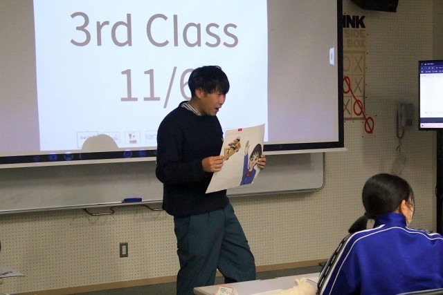 本日4時間目、英語ルームにて「10年次研修」が行われました。10年次研修とは、勤続10年を迎えた教員が行う研修です。単元の目標は、「オンラインで他校の生徒に自分たちが行った職場体験について説明するために、職場体験でしたことや自分の考えを整理し、簡単な語句や文を用いてまとまりのある文章を書くことができる」です。生徒たちは、パネルを利用した英語での説明練習を行った後、Chromebookを活用した職業体験のクイズで楽しみながら学び、そして自分の職業体験についての英文を考えていました。笑顔の絶えない楽しい雰囲気の中で、学びを深めていました。