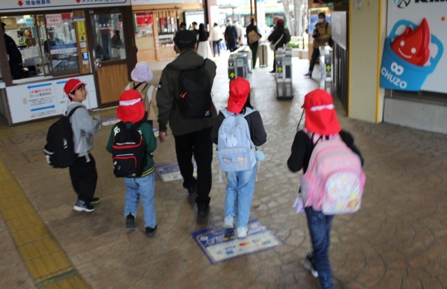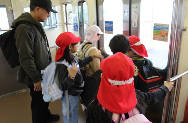 11/11(火)2年生 楽寿園探検Part1 公開日 2025/11/11 更新日 2025/11/11 2年生 2年生は、生活科の校外学習で楽寿園へ出かけました。今回の目的の一つである「乗り物の乗り方」の学習として、電車を使って三島まで行きました。切符の買い方や改札機の通り方、車内でのマナーなど事前に学習したことを実践しました。車内では、駅名を見ながら「あと○駅だね。」と、友達同士で確認する姿も見られました。 +7 2年生