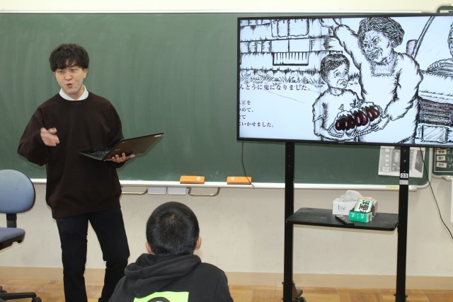 今日は教員による読み聞かせがありました。絵本と同じTシャツを着ている先生、「グォー」「キラーン」など擬音を表現する先生、パソコンやタブレットを駆使する先生、子どもの目を見ながらしっとりと読む先生、この日のために掲示物を作成してきた先生、読む前になぜこの本を選んだのかを説明する先生。どの先生からも、子どもたちが本の世界に入り込みその本の素晴らしさや世界観、メッセージを味わってほしいという熱い思いが伝わってきました。