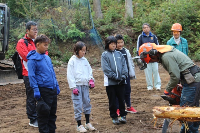 11/19(水)5年生 林業体験 公開日 2025/11/19 更新日 2025/11/19 5年生 今日は5年生の林業体験がありました。舟山地方の山に入り、実際に重機やチェーンソーを使って木を切らせていただきました。木を切り倒す瞬間や切った木を運ぶところなど、普段はなかなか見ることができないことも見学させていただきました。教科書や資料集だけでは分かりにくいことも体験を通して理解を深めることができました。戸田森林組合の皆様、今日はありがとうございました。 +7 5年生