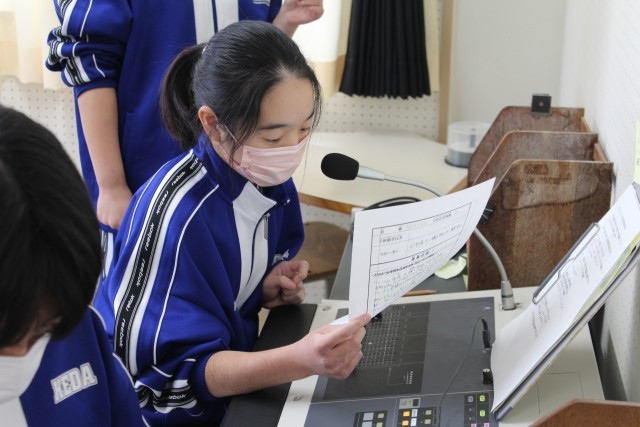 今日の給食の時間に、自治会選挙会長候補の政見放送がありました。「わたしが自治会長になったら・・・。」と、今後戸田小中一貫学校をどのようにより良くするのか、その思いと方法が語られました。明日は、副会長候補の政見放送を予定しています。
