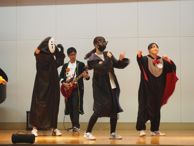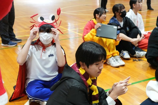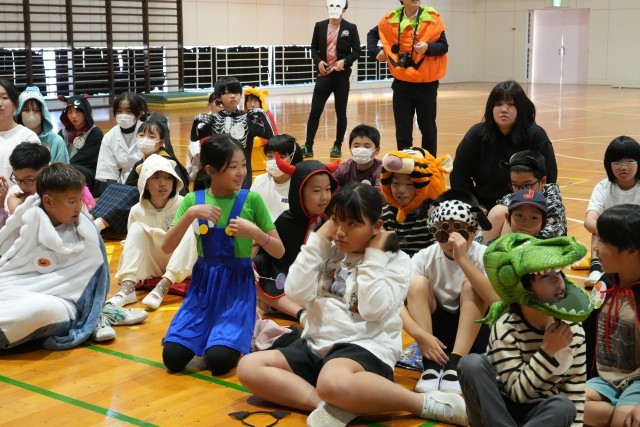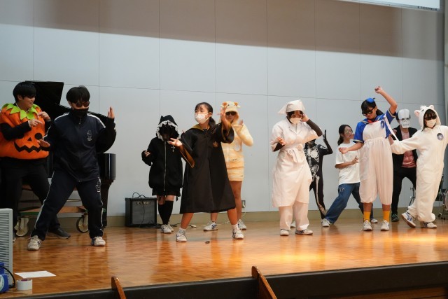 11/20(木)ハロクリパーティー 公開日 2025/11/21 更新日 2025/11/21 小中一貫教育 昼休みに、子供たちが楽しみにしていた「ハロクリパーティー」がありました。お化けをなどをかいたワッペンを付けないと会場に入れないそうです。子供たちは、ワッペンを付けたり自前の仮装をしたりして楽しみました。仮装をする先生もいました。 +7 小中一貫教育