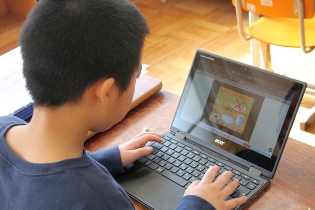 4年生の国語では、単元テストが終わった後、児童たちはChromebookを使用して、各自タイピング練習をしたり、様々な教科のAIドリルを行ったりしていました。