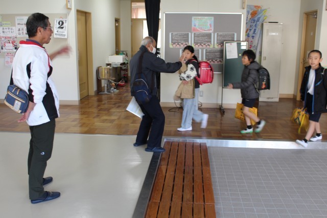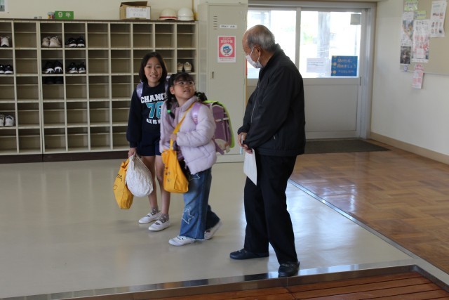 12/2(火)県下一斉冬季補導 公開日 2025/12/02 更新日 2025/12/02 地域連携 県下一斉冬季少年補導が実施され、戸田地区の少年補導委員が来校し子供たちの下校を見守ってくださいました。下校する子供一人一人に「今日の持久走はどうだった?」「勉強は楽しかった?」「気をつけて帰ってね。」など、優しい声かけをしてくださいました。 +4 地域連携
