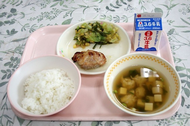 今日の給食は、「ご飯」「鶏肉の味噌焼き」「茎わかめのサラダ」「鱈のつみれ汁」「牛乳」です。鶏肉の味噌焼きは、焼き方・味付けが絶妙で、とってもジューシー。大変美味しくいただきました。子供たちも喜んで食べていました。鱈のつみれ汁は、鱈から出る旨味と出汁とが相まって、こちらも大変美味しかったです。