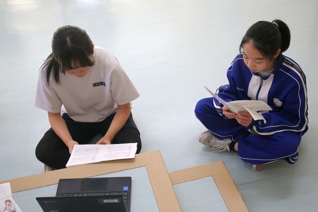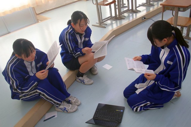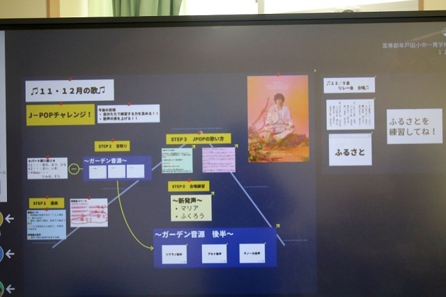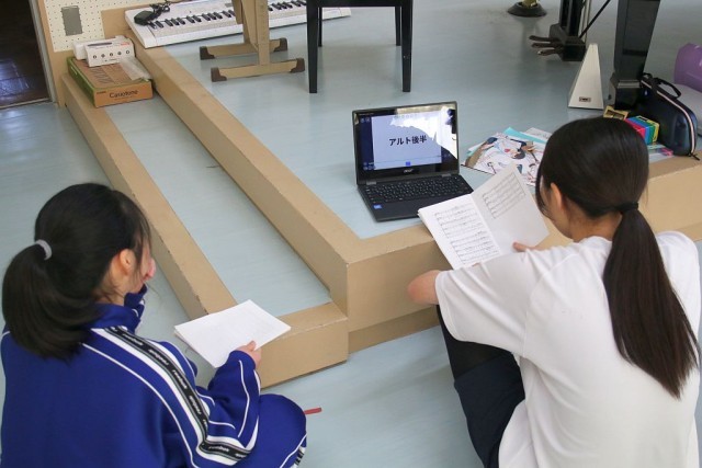 8年生の音楽では、藤井風さんが歌われている「ガーデン」を練習していました。Chromebookを活用し、パート別で楽譜を見ながら音取りをしています。なかなか音取りが難しいようで、「助けて~」とつぶやく生徒もいました。