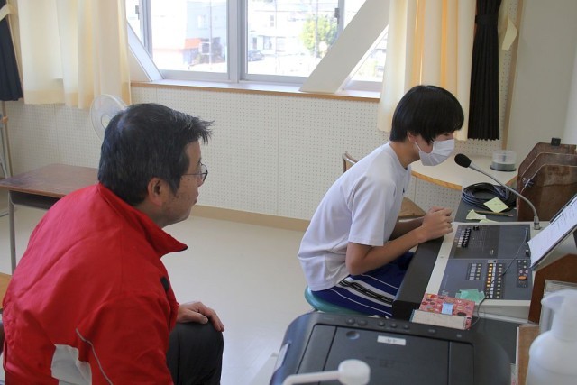 9年生は給食を食べ終わり、担任の先生も一緒にトランプを楽しんでいました。微笑ましい一コマですね!放送委員は放送室で委員会のお仕事中です。相変わらず上手なDJぶりで感心しました。