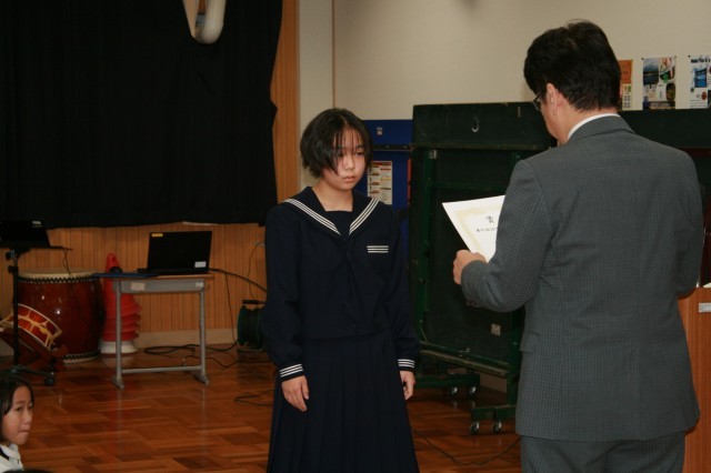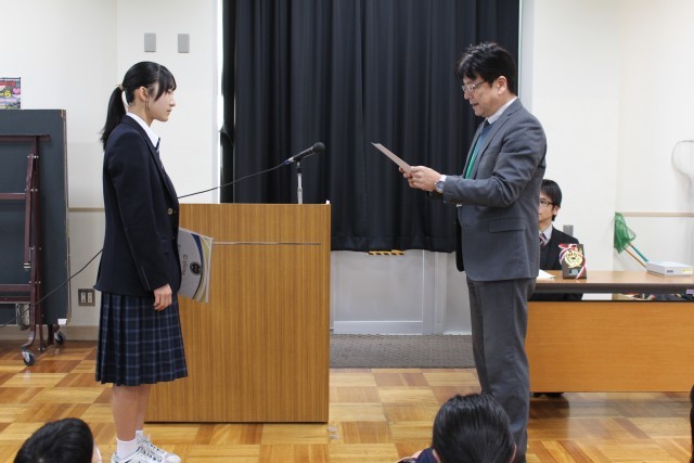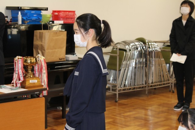 12/23(火)表彰会 公開日 2025/12/23 更新日 2025/12/23 小中一貫教育 終業式の前に表彰式が行なわれました。「沼津市席書コンクール」に続き、「税に関する作品ポスターの部優秀賞」、「沼津市スポーツ祭バドミントンの部第3位」、「ジュニアオリンピックカップU16陸上競技大会女子走高跳 第6位」「伊豆地区陸上競技大会100mH優勝 走高跳優勝」「沼津市優秀選手賞受賞」、「沼津市民剣道大会 団体戦優勝 個人戦準優勝」など、今回もたくさんの表彰がありました。 +6 小中一貫教育