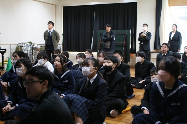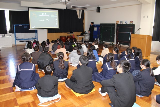 表彰式に続き、多目的室にて第2学期終業式が行なわれました。初等部、中等部、高等部の代表者が2学期をふりかえり、がんばったことや成長したと感じたこと、3学期に挑戦したいことなどを堂々と述べました。その後、校長先生が作成された「2学期ふりかえり動画」をみんなで鑑賞しました。各学年の学習会や各種講座、自治会イベントなど盛りだくさんの内容で潮風祭を除いても約16分におよぶボリュームがありました。最後に、生徒支援担当の先生から冬休み中の過ごし方についてお話しがありました。戸田小中のみなさん、健康に気をつけて良いお年をお過ごしください。