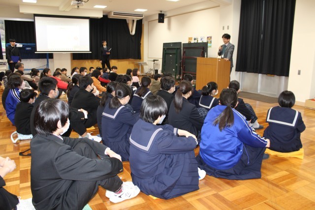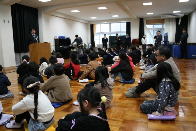 寒空でしたが子どもたちは元気に登校しました。朝の会終了後、多目的室にて第3学期始業式が行なわれました。校長先生が、「冬休みは、どのように過ごしましたか?」と問うと、子どもたちは目を輝かせて楽しかったことや嬉しかったことなどを口々に答えていました。その後、将来なりたい職業ランキング(第一生命調べ)をクイズ形式で確認しました。小学校、中学校、高等学校、さらに男女別で順位がかなり違うので、「えー!!」と驚いていました。3学期は「つなぐ学期」なので、将来の目標に向けてがんばってほしいとお話しされました。