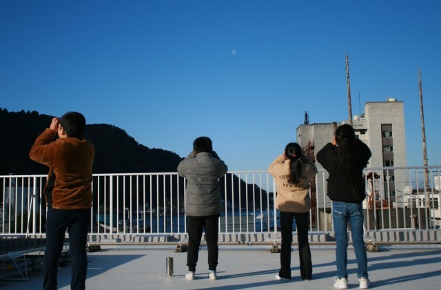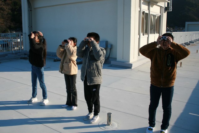 今日は、天気も良く西の空に月が見えました。4年生は、2学期に理科で行った「月の位置の変化」の復習として、月を観察しました。この後、月は西に沈んでいきます。月の動きも、太陽と同じですね。
