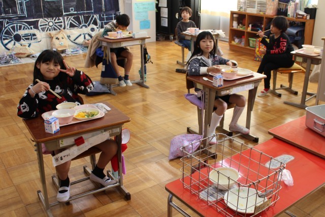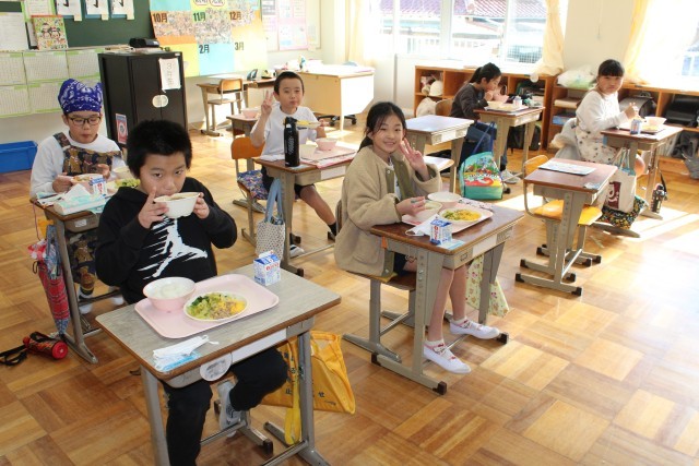 1/8(木)3学期の最初の給食 公開日 2026/01/08 更新日 2026/01/08 給食室 今日は、3学期最初の給食です。献立は「ご飯」「二色そぼろ」「おひたし」「みそけんちん汁」「牛乳」です。撮影する際に「二色そぼろは美味しいですか?」ときくと「おいしー!!!」と笑顔で答えてくれました。給食をたくさん食べて、寒さに負けない体を作ってください。 +4 給食室