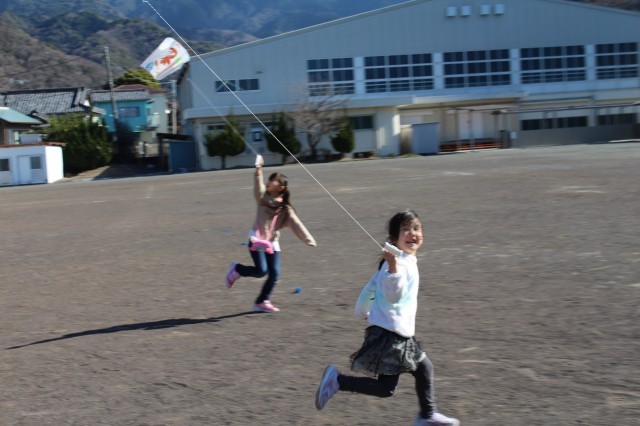 1/9(金)1年生 生活科「たこあげ」 公開日 2026/01/09 更新日 2026/01/09 1年生 1年生は、図工でつくった凧を揚げました。天気も良く、気持ちよく凧揚げをすることができました。最初は、遠慮気味に揚げていましたが、慣れてくるとずいぶんと高くまで揚げることができるようになりました。 +3 1年生