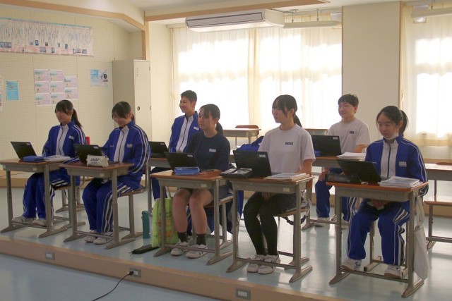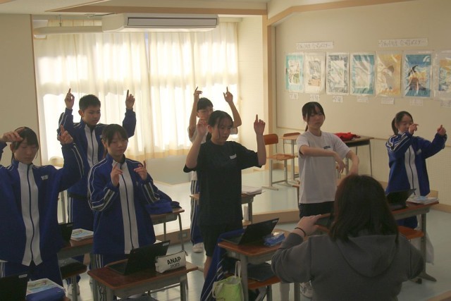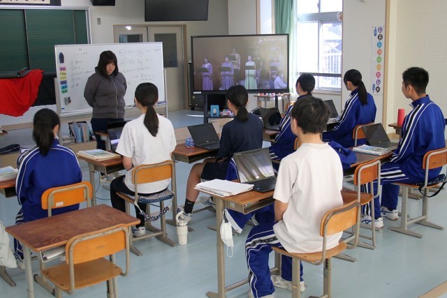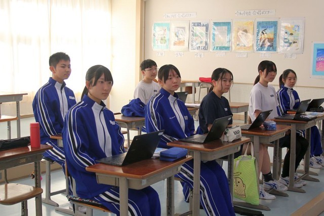 8年生の音楽では、合唱曲の選曲を行っていました。兵庫の合唱団が歌っている様子を大型モニターで鑑賞していましたが、8年生は鑑賞する姿勢がみんな素晴らしいですね!授業の終わりには、校歌の指揮決めで行う四拍子をみんなで練習していました。