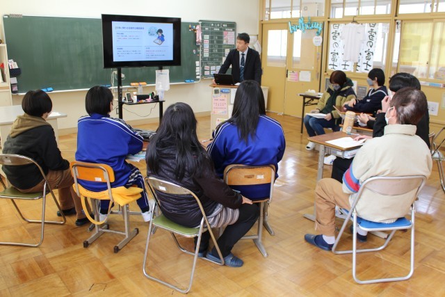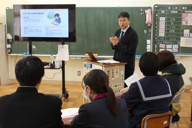 9年生は5時間目に高等学校入試関係保護者会が開かれました。保護者の方々にもご参加いただき、出願方法や試験当日までの日程、受験上の留意点などについて、進路指導主事が説明しました。9年生は真剣に説明に耳を傾けていました。