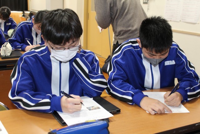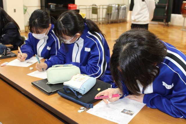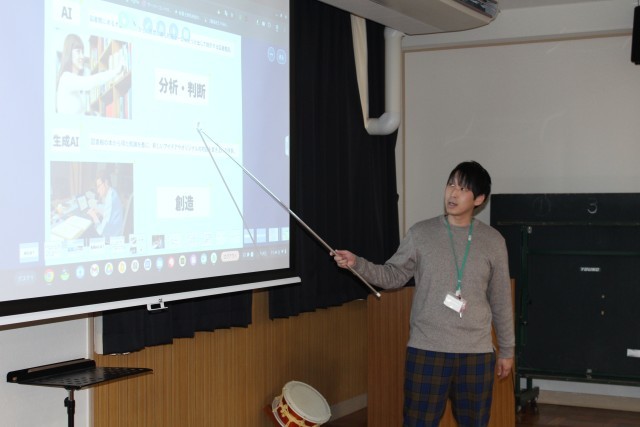7~9年生は、4時間目に生成AIを利用する上での注意点を学ぶ合同道徳を行ないました。「生成AIを利用をするとどのようなことができるのか?」ということを確認したあと、実例をあげて問題点・注意点について考えました。「人名」「所属校」「住所」「電話番号」「写真」などの個人情報を入力しないこと。AIの回答が事実に基づかないことがあること。著作権や肖像権を侵害していないか常に意識することなどを学びました。