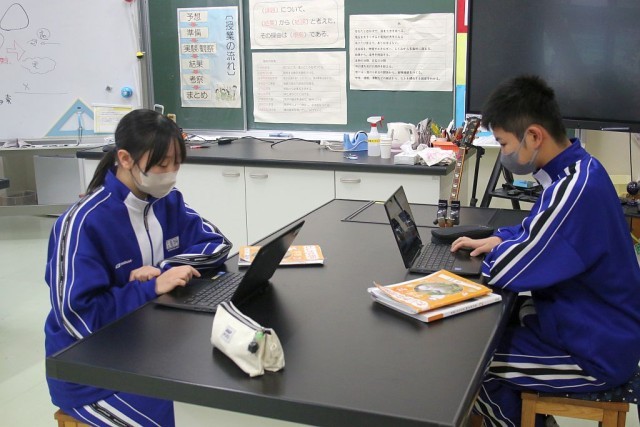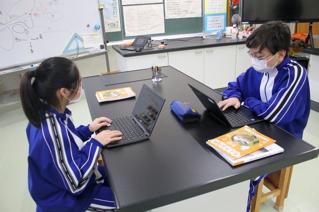 8年生の理科では、「往復するとき、飛行機のフライト時間に差があるのはなぜか?」を学習問題として授業が進められています。地球規模ではどのように大気は動いているかを学びながら、学習問題に向かっていきます。それにしても8年生の姿勢はみんな素晴らしいですね!