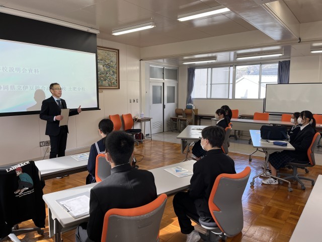 1/21(水)8年生 高等学校訪問Ⅱ 公開日 2026/01/23 更新日 2026/01/23 8年生 8年生は高等学校訪問で伊豆総合高等学校土肥分校にお邪魔し、高校の授業や施設などを見学させていただきました。波の伝わり方を観察する実験や商業の授業参観を通じて、高校進学への具体的なイメージをつかむとともに就職への意欲を高めることができました。 +6 8年生