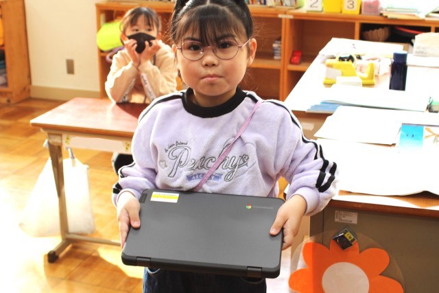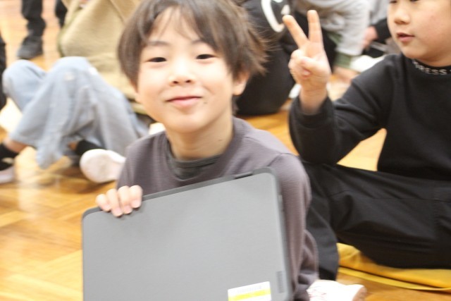 1/27(火)一人一台端末貸与式(初等部) 公開日 2026/01/27 更新日 2026/01/27 初等部 今日の朝、初等部では新端末の貸与式が行われました。各学年の代表児童が校長先生より受け取りました。その後、情報担当の先生と「大切に扱うこと」「ルールを守って正しく使うこと」「貸与されている物なので、待ち受け画面を変更しないこと」などの約束を確認しました。式の後、各クラスでは担任の先生から新しい端末を受け取ったり、古い端末のデータを移したりしました。 +4 初等部